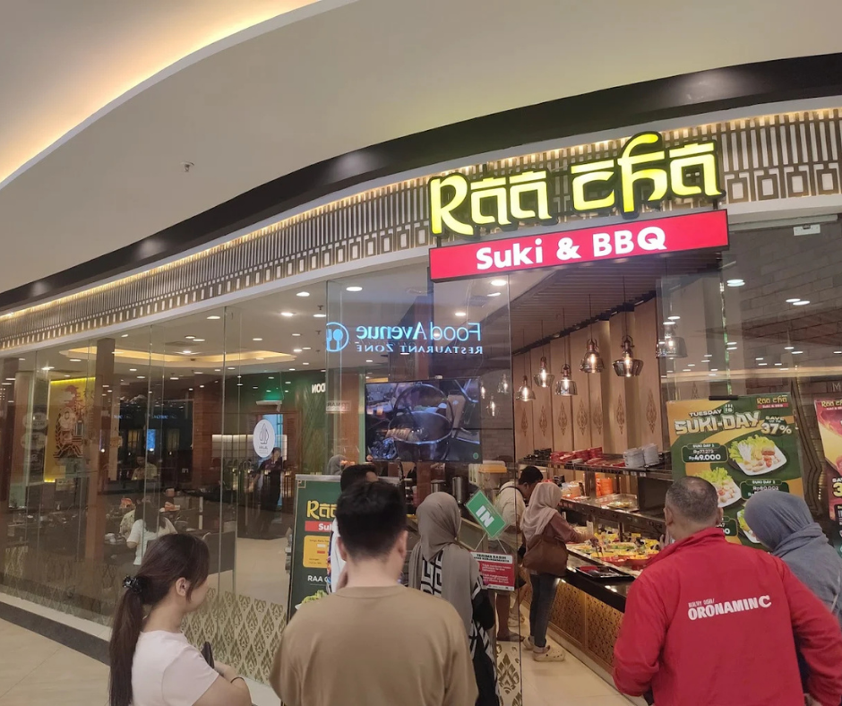 PROMO GREAT SALE ! BBQ Party, berlaku di setiap hari jumat , PROMO INI BERLANGSUNG MULAI TANGGAL 21 JUNI - 12 JULI 2025 ! Raa Cha Suki & BBQ di Sentul menawarkan pengalaman bersantap all-you-can-eat yang interaktif dan personal dengan spesialisasi pada hidangan suki dan barbecue ala Thailand. Restoran ini memungkinkan setiap pengunjung untuk memilih dan memasak sendiri bahan-bahan segar pilihan, mulai dari irisan daging premium, berbagai jenis bakso, hingga sayuran hijau, yang kemudian dapat direbus dalam kuah suki yang kaya rasa atau dipanggang di atas panggangan meja. Dengan konsep self-service yang unik dan suasana yang nyaman, Raa Cha berkomitmen untuk menyajikan hidangan berkualitas tinggi dan pengalaman kuliner yang menyenangkan bagi keluarga maupun kelompok.